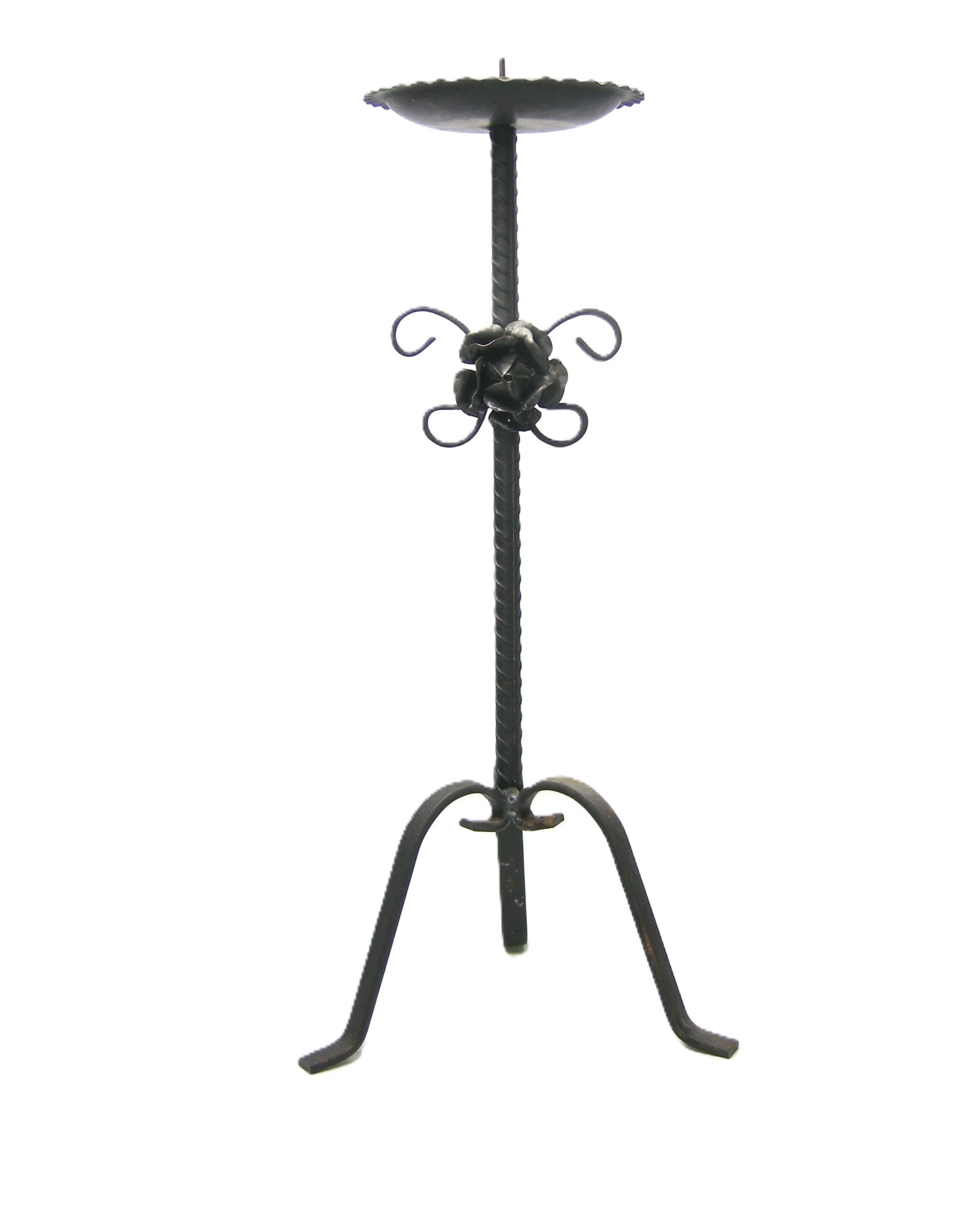 Vintage smeedijzeren vloerkandelaar met roosje
